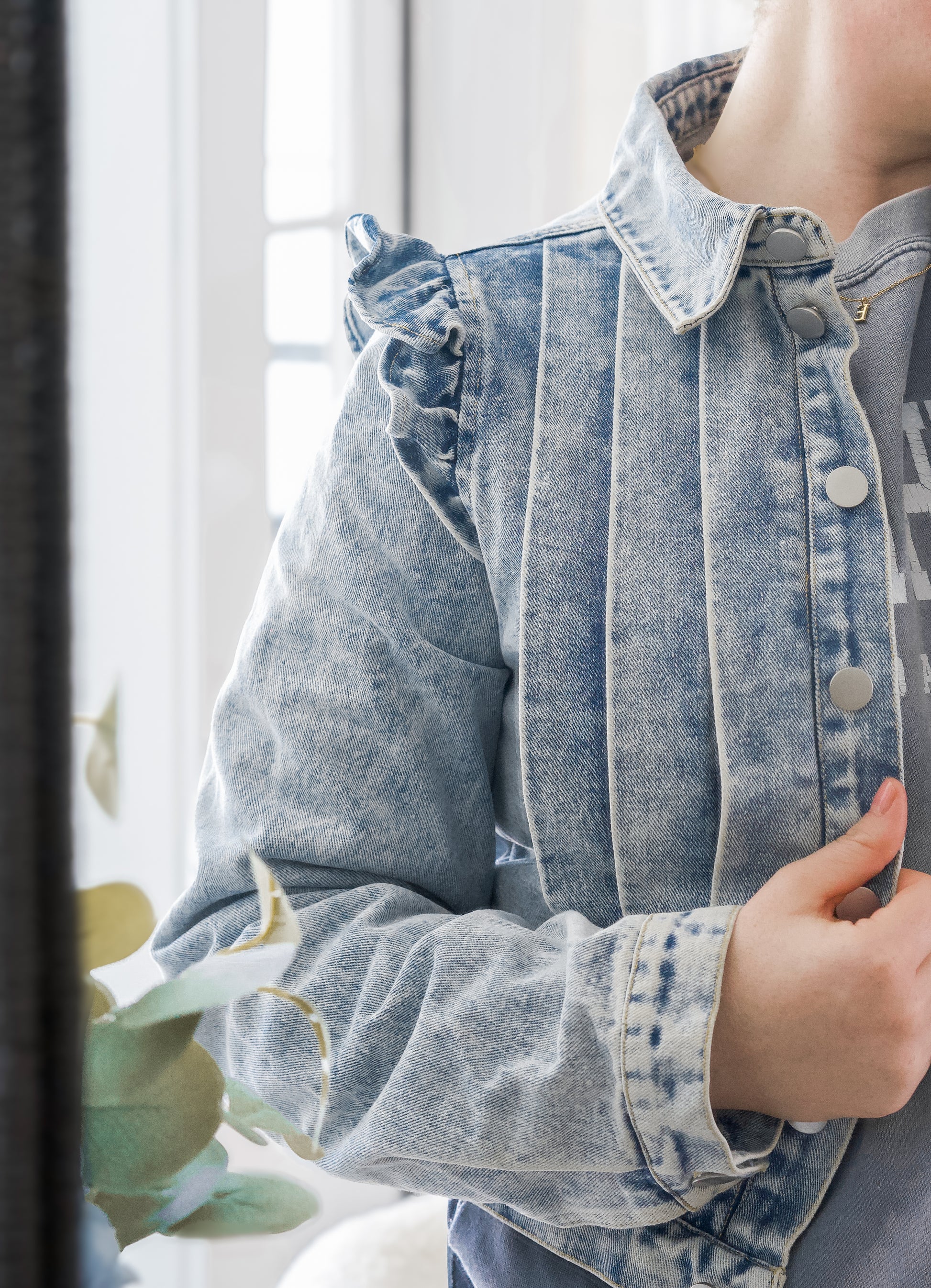 Ruffle-Sleeved Denim Jacket